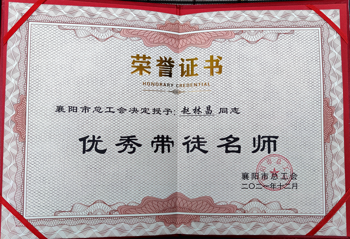 趙林昌同志被評為“襄陽市2021年優(yōu)秀帶徒名師”