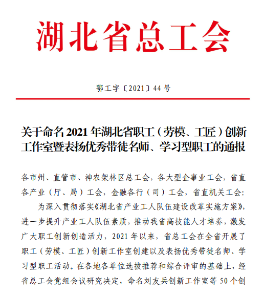 近日,湖北省總工會印發(fā)通報,對全省學習型職工進行通報表彰。公司特裝制造部部長張正國同志被表彰為“全省優(yōu)秀學習型職工”,成為襄陽市獲此殊榮的4名先進代表之一。