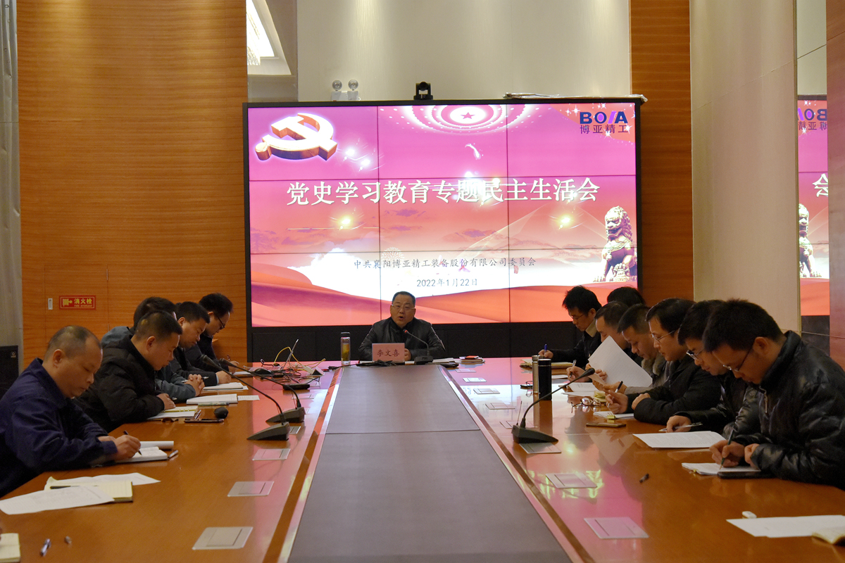 為鞏固拓展黨史學(xué)習(xí)教育成果,教育引導(dǎo)公司黨員干部深入學(xué)習(xí)貫徹黨的十九屆六中全會精神,深刻認(rèn)識“兩個確立”決定性意義,進(jìn)一步提高政治站位、統(tǒng)一思想認(rèn)識、振奮創(chuàng)業(yè)熱情,助推公司新年度高質(zhì)量發(fā)展。1月22日,公司黨委在總部313會議室組織召開了黨史學(xué)習(xí)教育專題民主生活會第一階段會議。公司黨委書記李總主持會議,公司黨委委員、各黨支部書記和總監(jiān)以上管理干部參加會議。